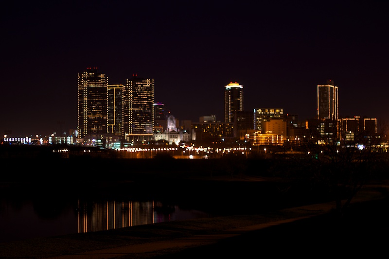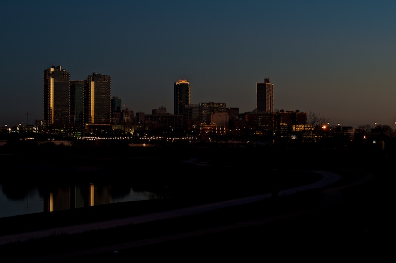 The DFW Photography Club of Texas MeetUp Group met up last night to shoot the Fort Worth Skyline. I managed to make it out, despite my agoraphobia, and chitchatted with a few shooters while I was there. I experimented a bit with deliberately defocusing, white balance, and wide/narrow aperture vs. shutter speed comparisons. I wish I’d remembered the remote release, as quite a few of the night shots were blurred due to my twitchy trigger finger. All in all it was a really good time.