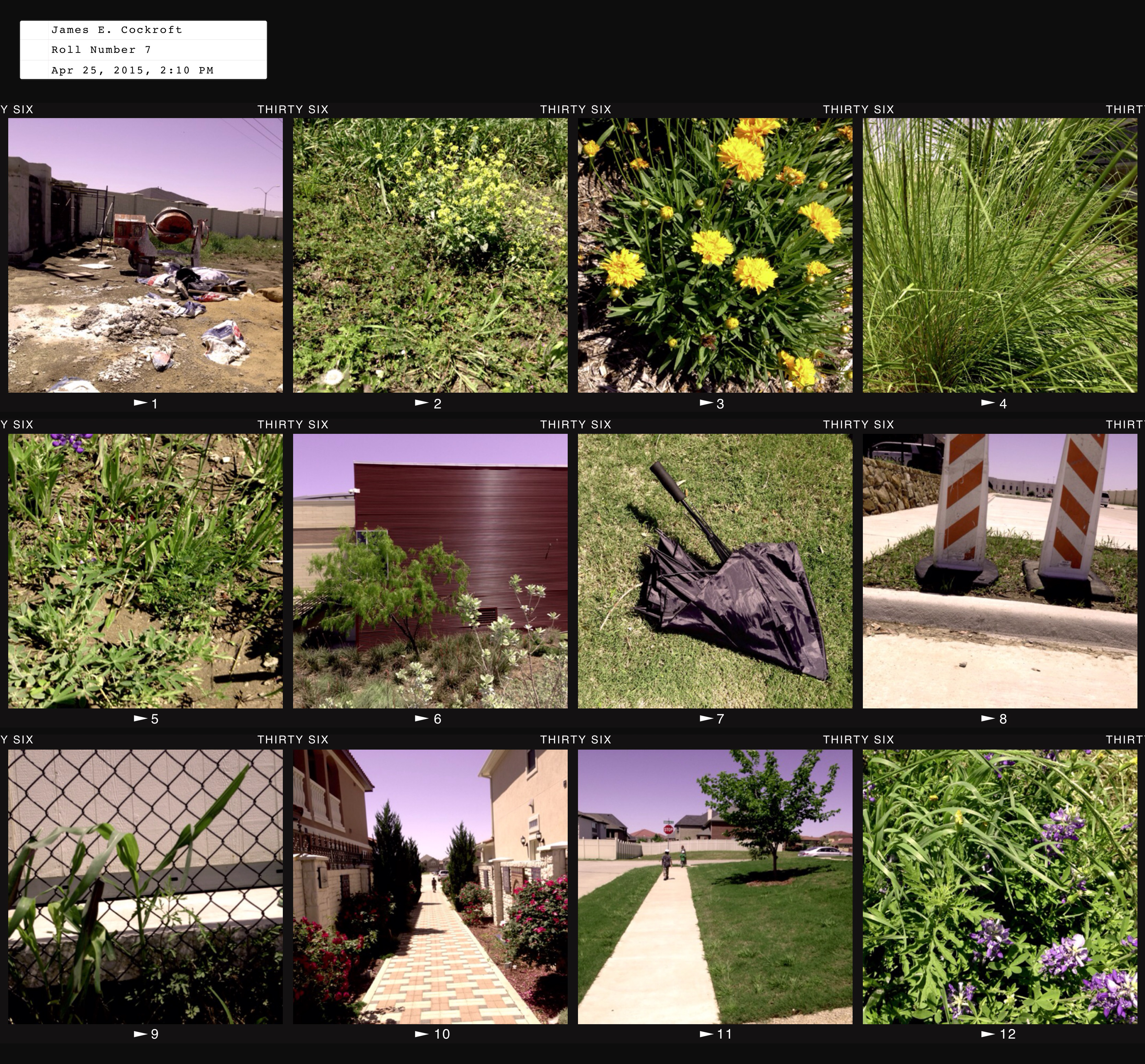 There’s a new housing development going in across the street where we usually go to walk. I’ve shared some pictures from there before, including one of Hana descending a staircase. Well, same staircase, now with actual walls and whatnot.And here’s the contact sheet from a roll of the built-in 400 CC 120. I don’t much like it… I wonder if I can change or delete it?