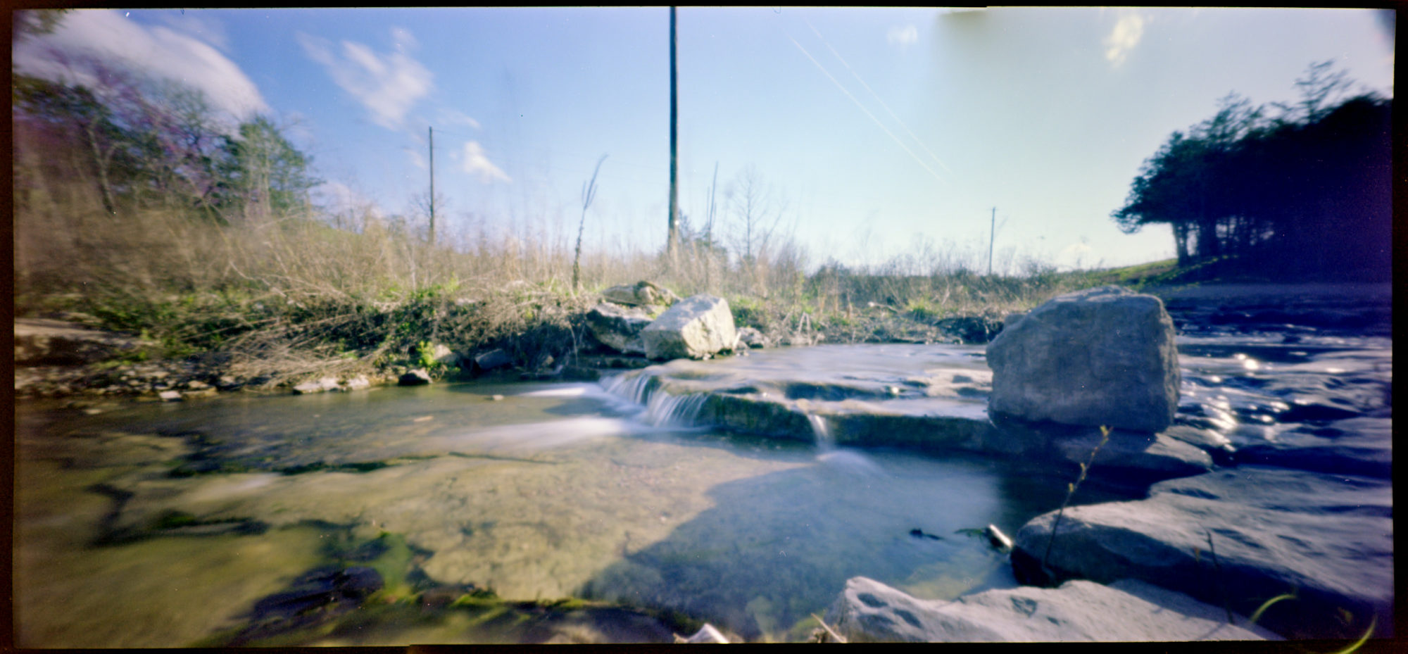 I put two rolls through the Holga 120 Wide Pinhole Camera (hereafter “WPC”) over my 9 days in Arkansas in early April 2021: an expired roll of Fuji Pro 160C and an expired roll of Kodak Ektachrome SW.