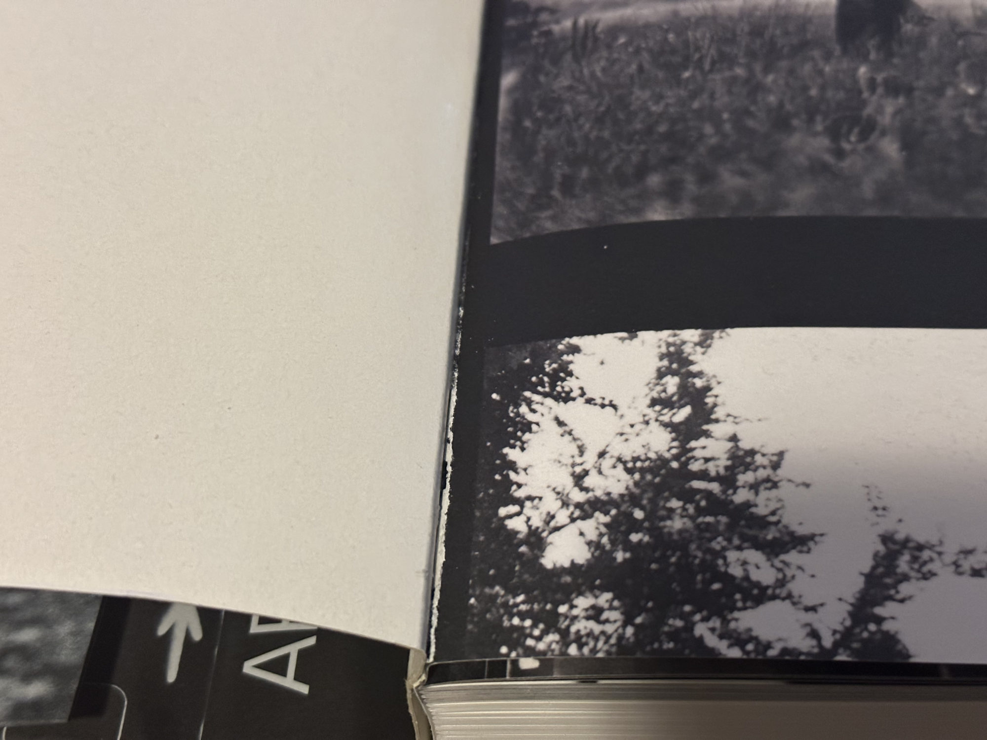 I’m tempted to see this rather severe and worrying failure as a symptom of Peak Photobook, and if so, I’m glad I got out when I did…* I should probably reach out to Mack and ask if this is a feature, rather than a bug, but I probably won’t bother, as I’m not sure I can describe the issue properly. And, anyway, with some care, I can now flip through the book very gently and it seems to work like a book should, without the loud creaks and snaps as the book body pops away from, then re-sticks to random spots on the cover… smh. Ok. That’s enough. I’ll say nothing more about the book’s shoddy construction.